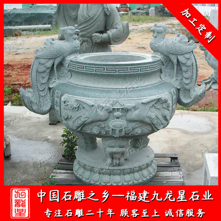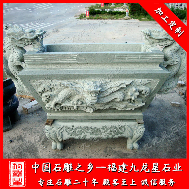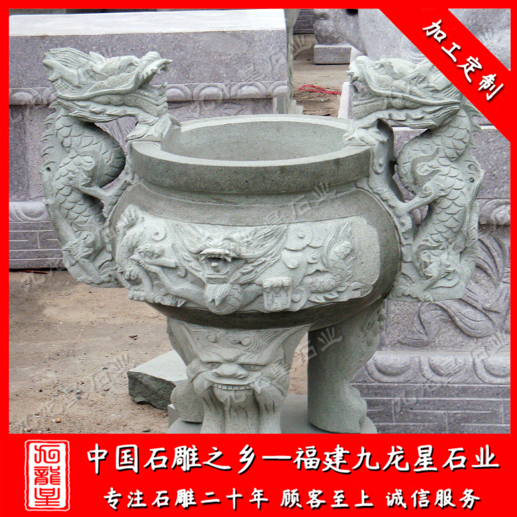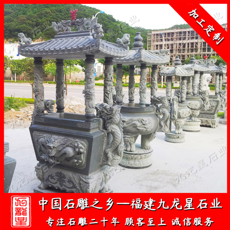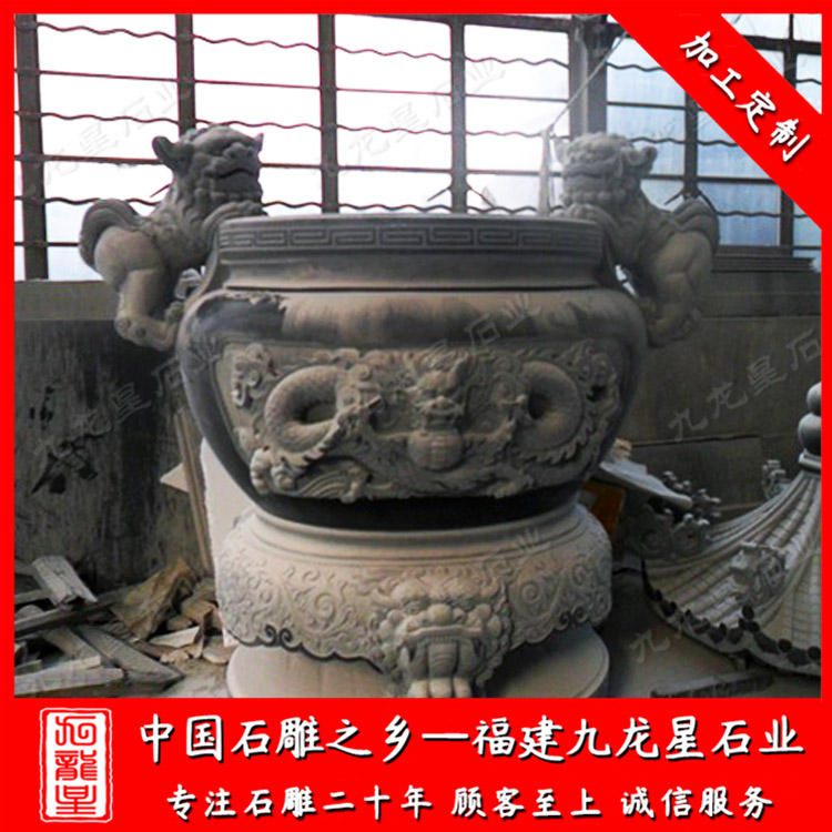 石雕香爐(石材香爐生產廠家 批發青石圓形香爐 寺廟大理石香爐)——九龍星石業