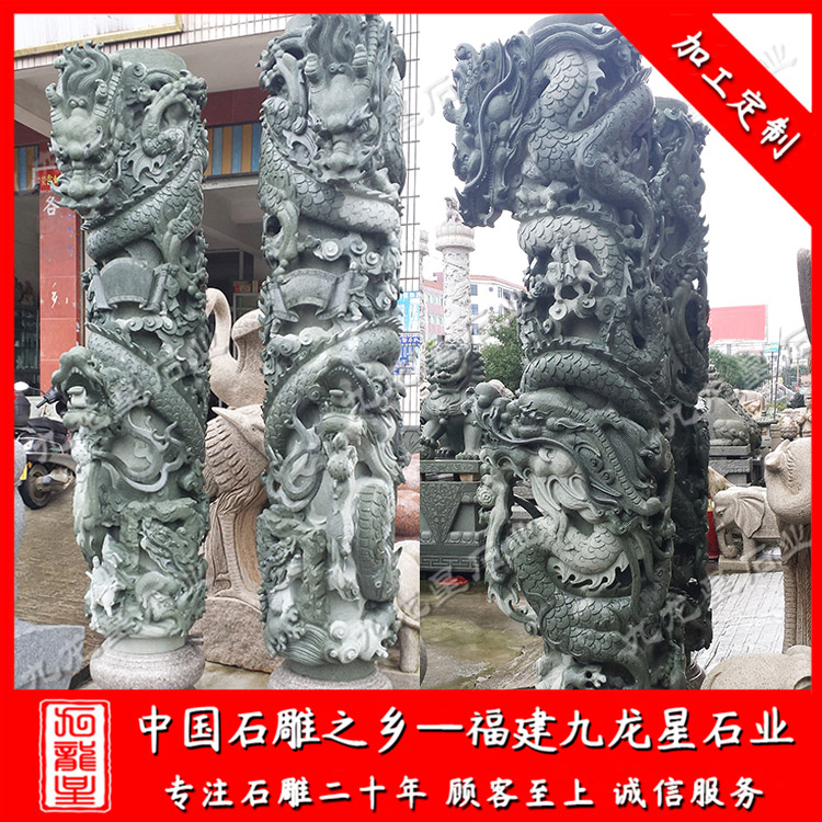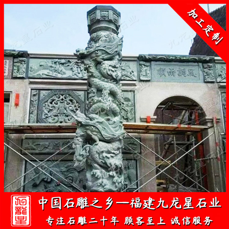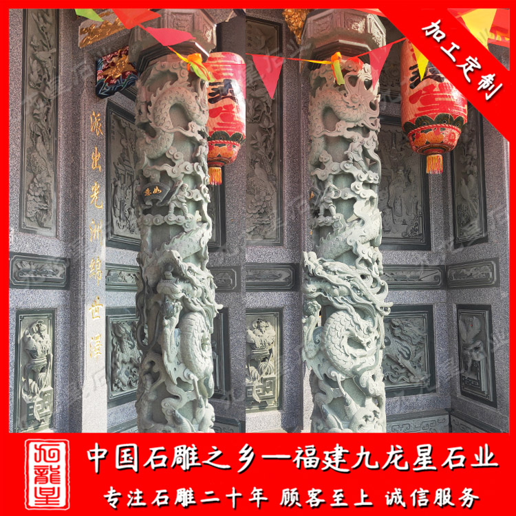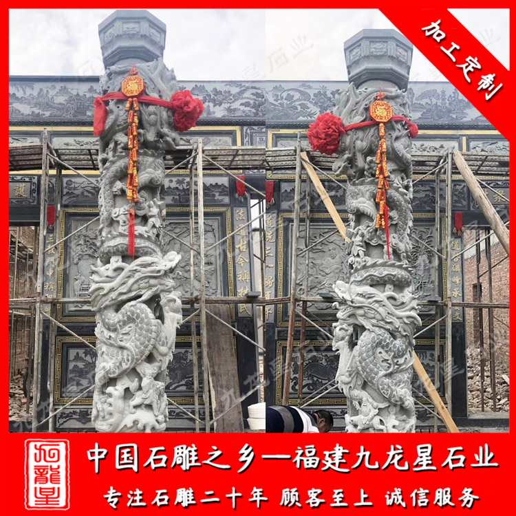 石雕龍柱(祠堂門口石雕龍柱 惠安石雕龍柱廠家批發(fā))——九龍星石業(yè)