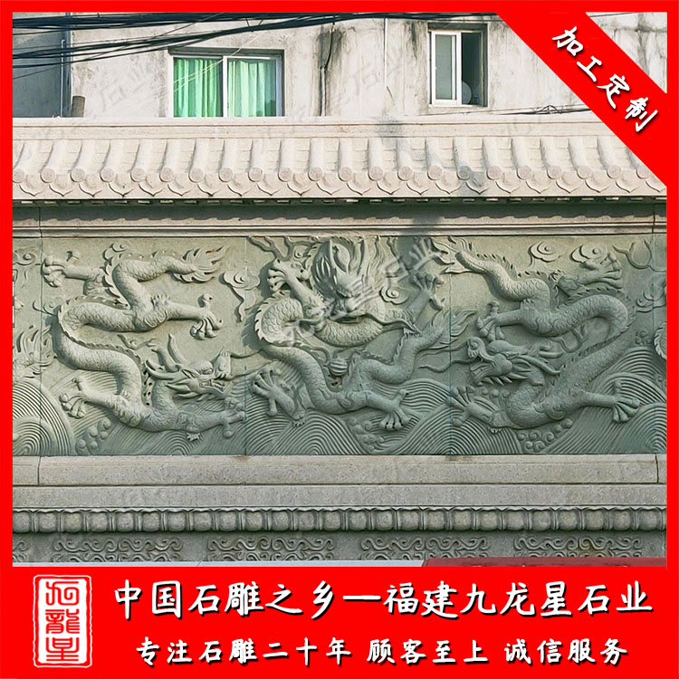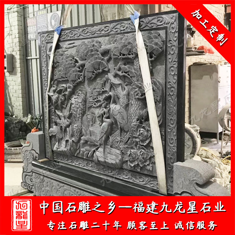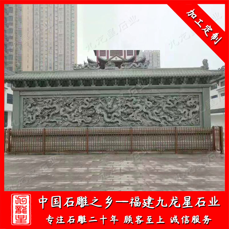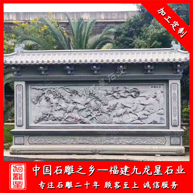 石雕照壁(寺廟石材九龍壁照壁 宗祠照壁松鶴延年浮雕)——九龍星石業