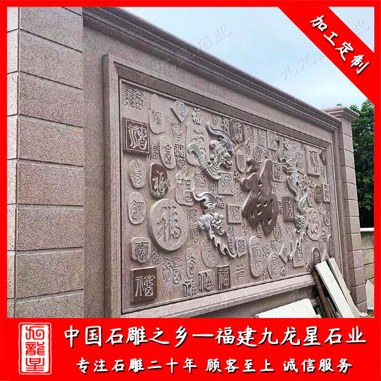 石雕照壁,是古代一種很常見建筑,它就是古代宅院內的通道的一面墻。而在我們現如今日常生活中,對于這類照壁的應用,早已不僅僅僅在一些庭院,祠堂佛山祖廟里,日常生活也是有石材九龍壁照壁,旅游景區浮雕圖案照壁,鄉村福字照壁這些,應用的規模越來越廣泛。