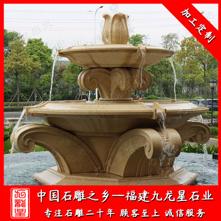 然后按照酒店的預算進行埃及米黃噴泉水池設計,結合酒店的風格、酒店門口的環境設計歐式埃及米黃噴泉水池的造型和在石材噴泉上面搭配的雕塑,例如獅子、天鵝等動物、或是人物雕等。