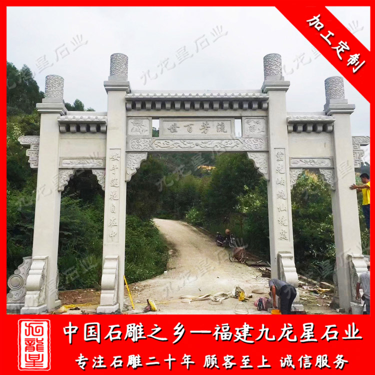 九龍星石業常年設計、加工石雕牌坊,款式多樣、工期快,歡迎定制。