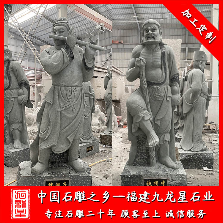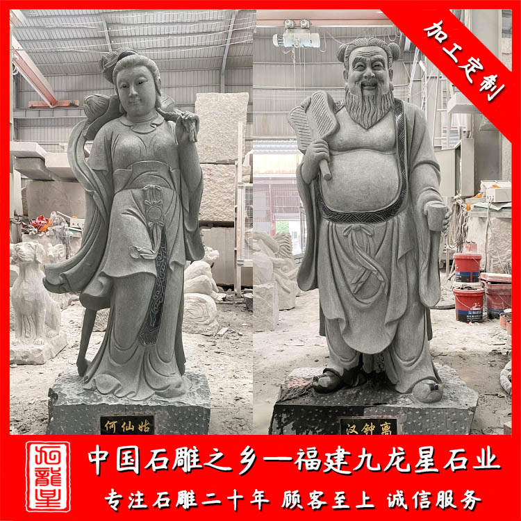 石雕八仙分別有漢鐘離、張果老、韓湘子、鐵拐李、呂洞賓、何仙姑、藍采和及曹國舅。八仙過海石雕廠家雕刻的石雕八仙過海雕像也經常的出現在一些寺院以及旅游景區。