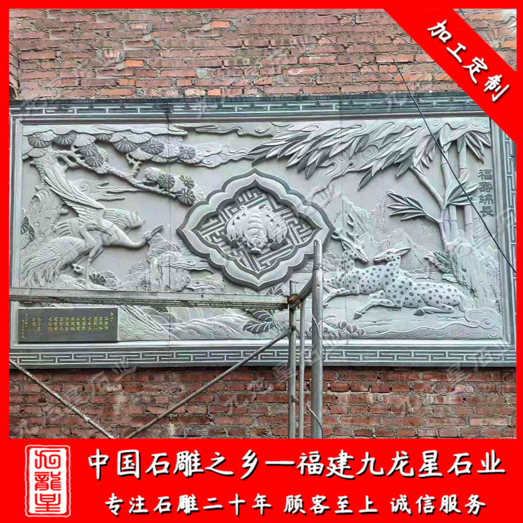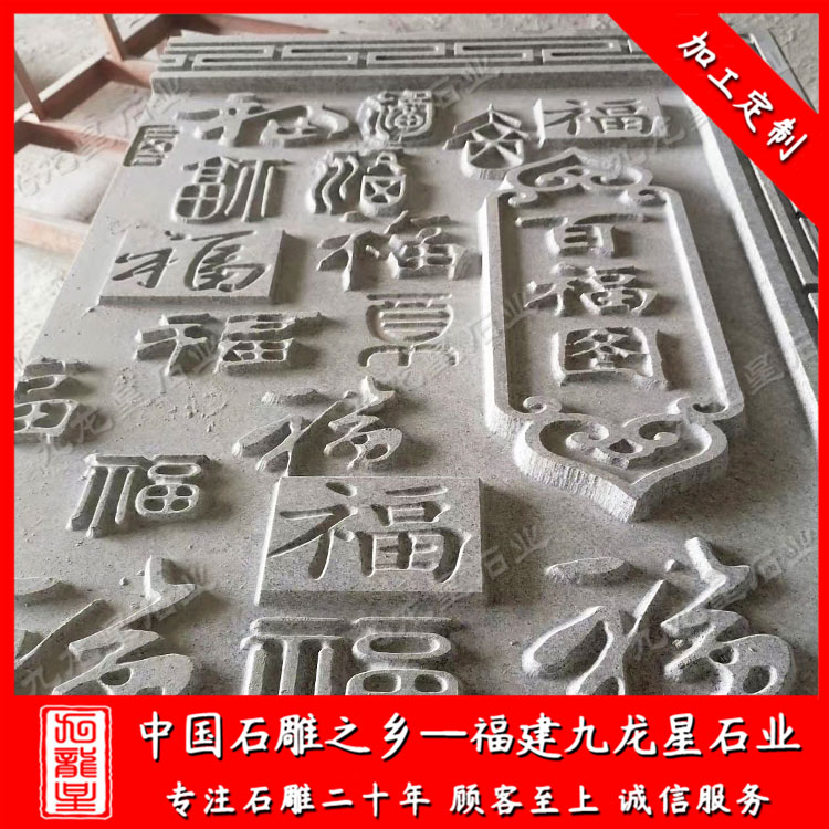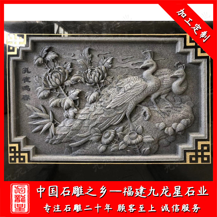 寺廟宗祠祠堂等古建風格的場所,我們經常看到石材浮雕的墻壁、或壁畫等。石材浮雕墻壁、石材浮雕壁畫上多雕刻的圖案有多種。九龍星石業從事石雕行業二十多年,常年設計雕刻石材浮雕、款式多、工期快,歡迎廣大客戶咨詢我們。