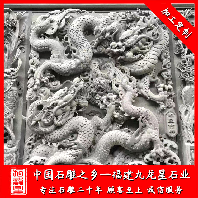 石雕浮雕(寺廟宗祠浮雕墻圖案設計 廠家雕刻石材浮雕墻壁)——九龍星石業