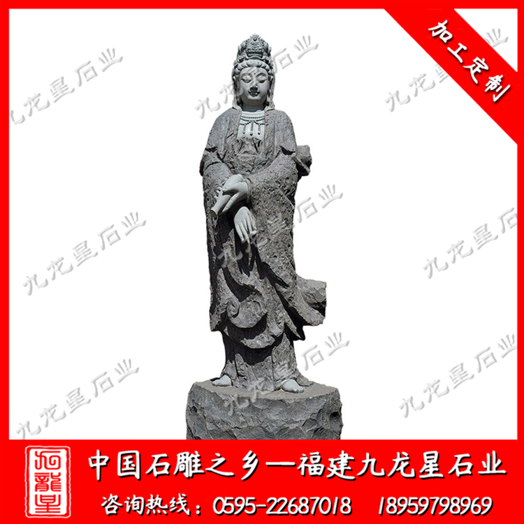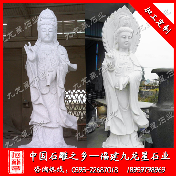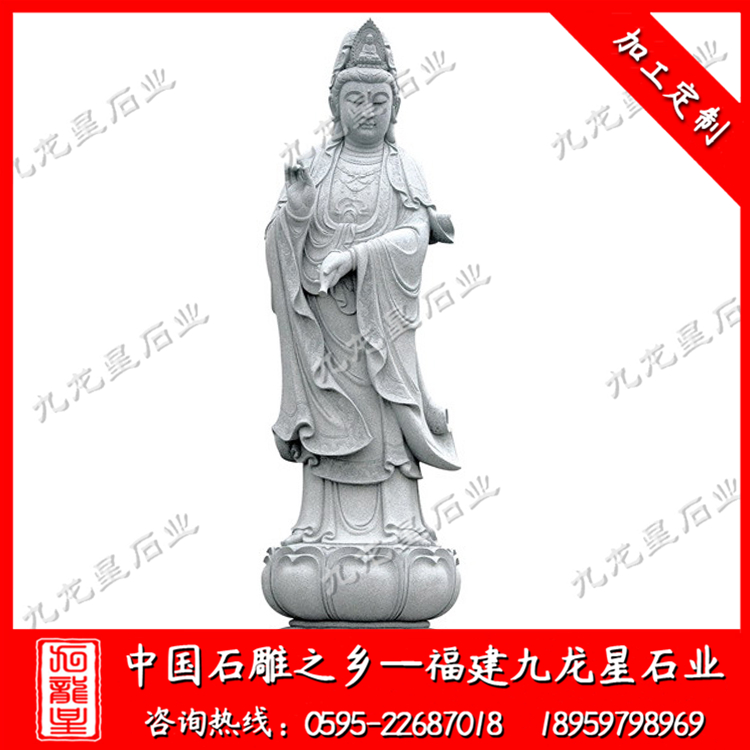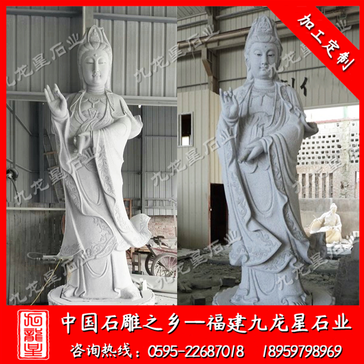 石雕觀音(石雕觀世音菩薩 芝麻白觀音 露天觀音石像)——九龍星石業