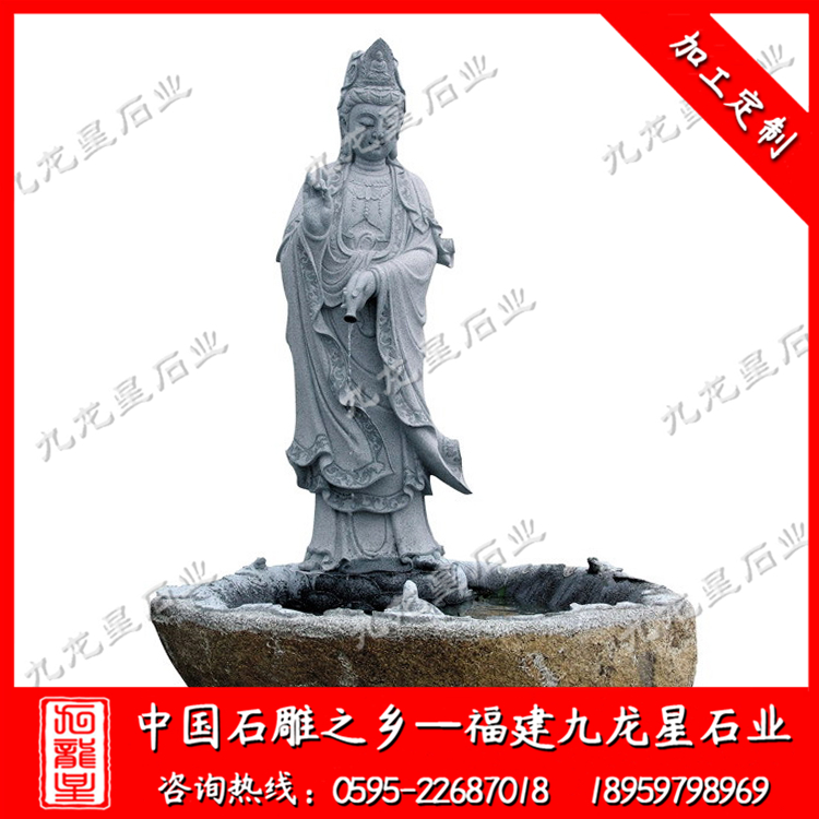 石雕觀世音菩薩具有平等無私的廣大悲愿,當眾生遇到任何的困難和苦痛, 如能至誠稱念觀世音菩薩,就會得到菩薩的救護。而且,觀世音菩薩最能適應眾生的要求,對不同的眾生,便現化不同的身相,說不同的法門。在佛教的眾多菩薩中,觀世音菩薩也最為民間所熟知和信仰。在中國的江、浙、閩、廣、臺灣,以及南洋華僑間,觀音信仰極為普及,所謂“家家阿彌陀,戶戶觀世音”。浙江的舟山群島,自古以來也一直被視為觀世音菩薩應化的道場。