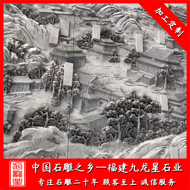廠家在雕刻的時候常采用青石、花崗巖進行雕刻,石雕浮雕的深度不一,淺的寺廟宗祠浮雕圖案花樣有2--3公分,深的有10--15公分。寺廟宗祠浮雕的不同雕刻出來的給人的感覺也會有所不同。下面是寺廟宗祠浮雕圖案花樣,浮雕山水畫、石雕浮雕花鳥圖片供大家欣賞,可找我們(九龍星石業(yè))定做。