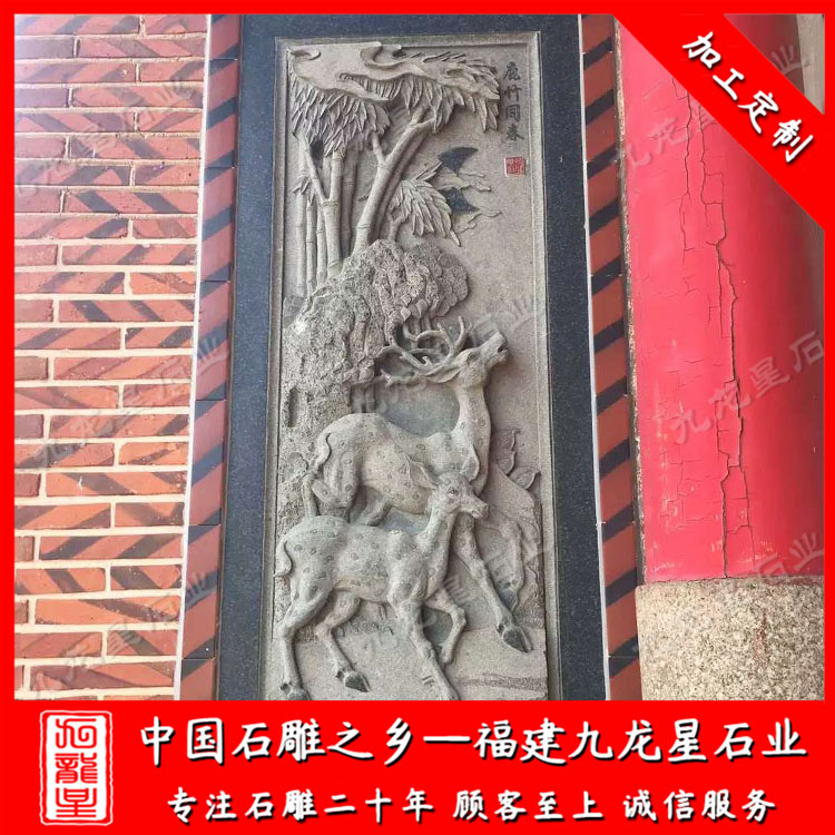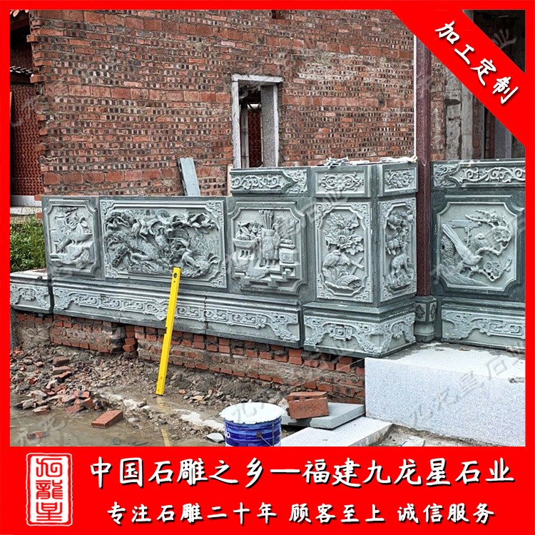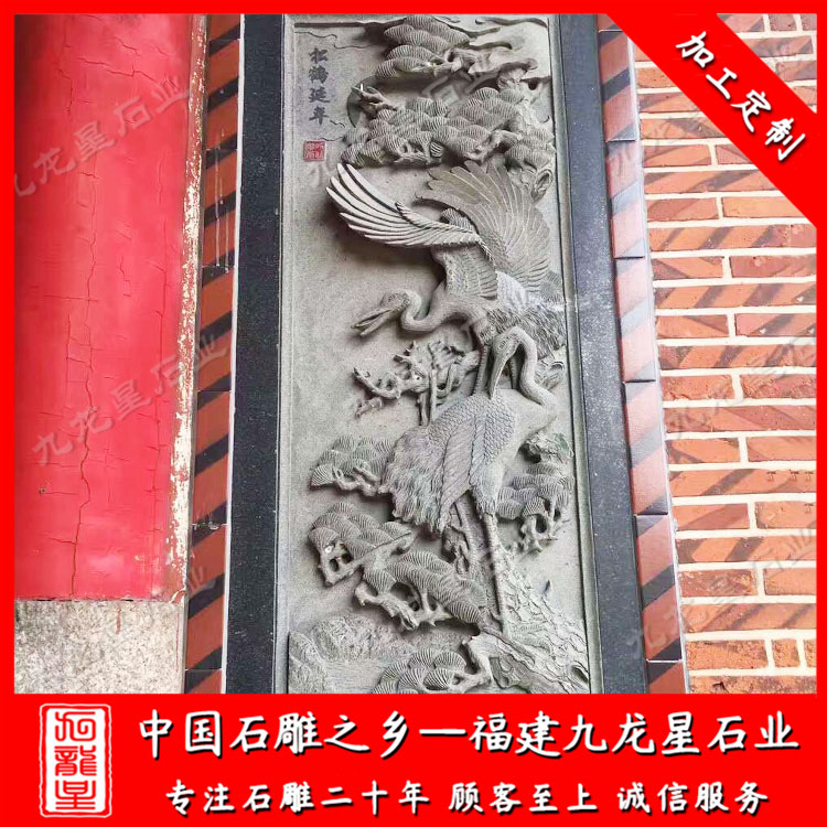 青石浮雕的設計雕刻,讓祠堂宗祠門面、祠堂宗祠的大殿正門墻壁顯得美觀大氣。青石石料為青色具備復古、古樸風,浮雕雕刻讓祠堂宗祠門面、祠堂宗祠的大殿正門墻壁更有立體感、空間感。