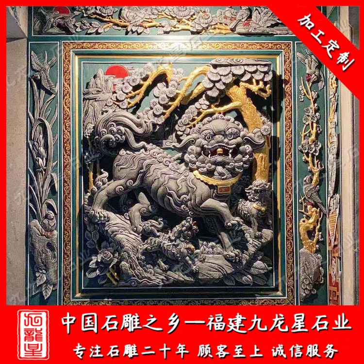 石雕浮雕(廠家雕刻廣東祠堂宗祠浮雕門面 大殿正門浮雕墻)——九龍星石業