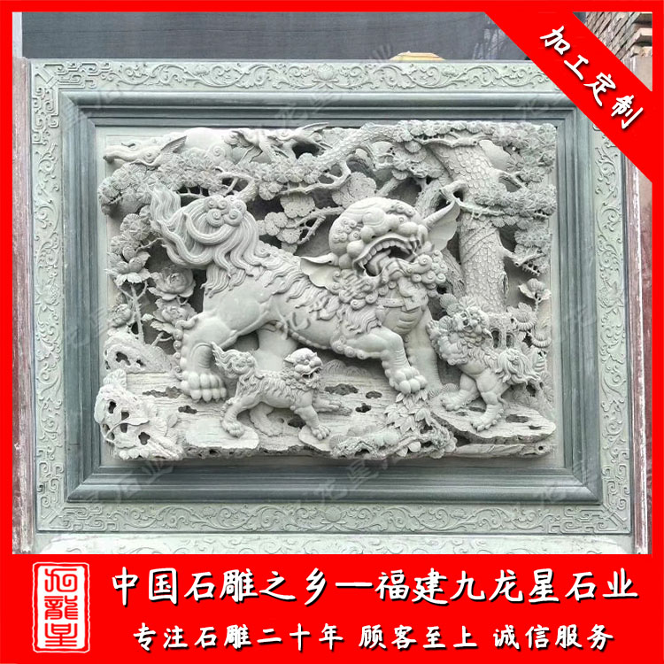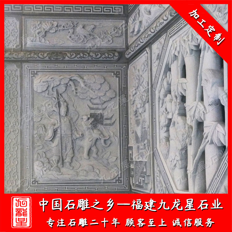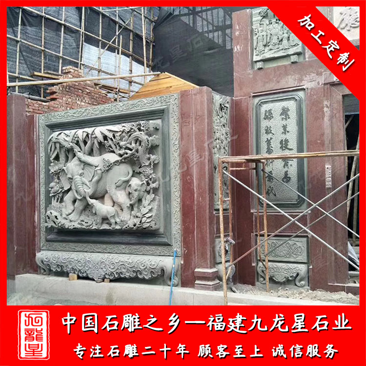 石雕浮雕(祠堂門面浮雕設計 新式祠堂大殿墻壁青石浮雕圖案)——九龍星石業