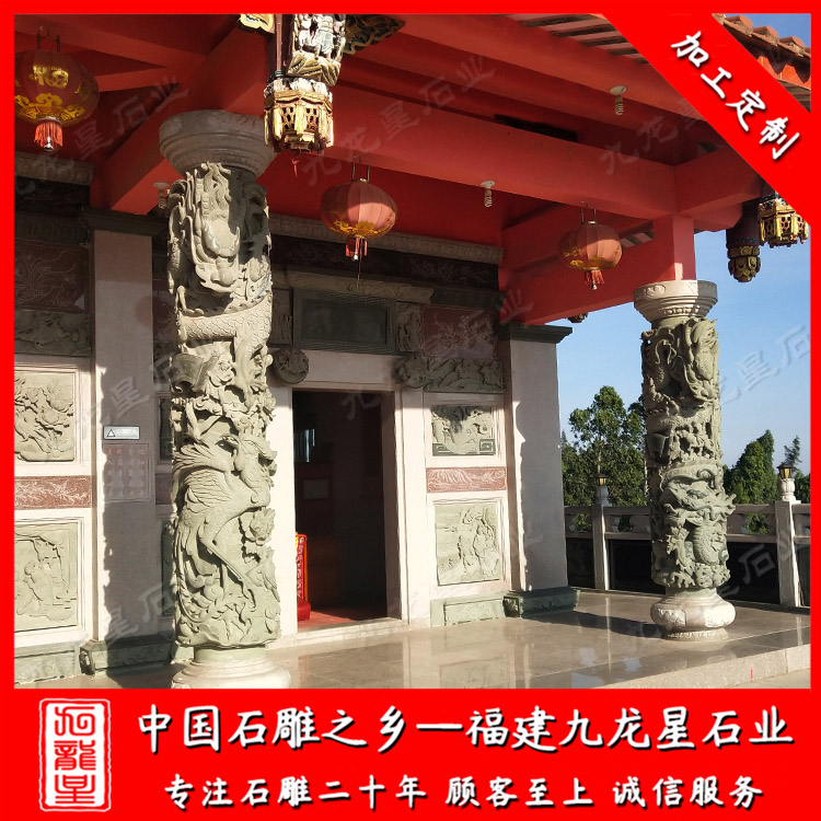 石雕龍柱,是一種以龍形為主體的石材浮雕柱子。有青石龍柱、花崗巖龍柱等等。惠安石雕工廠的石匠們在雕刻石雕龍柱的時候常常采用浮雕、圓雕、透雕等多種雕刻工藝相結合,這樣可以讓石雕龍柱看上去更有立體感、更加生動形象。