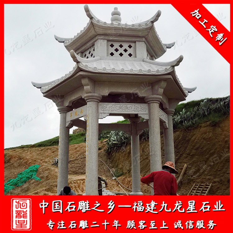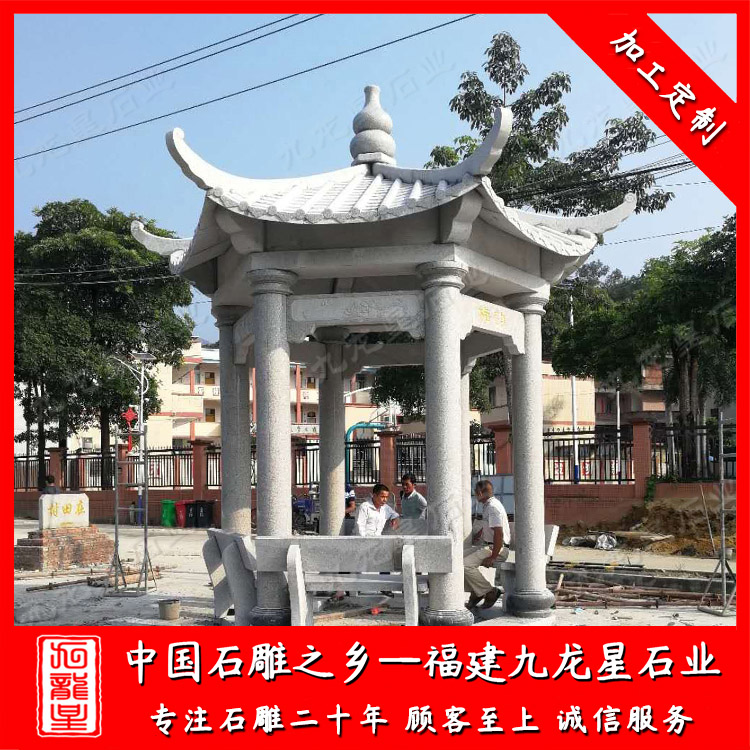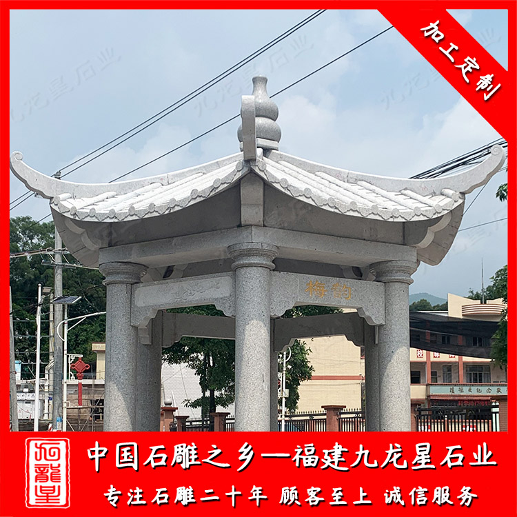 石雕涼亭(新農(nóng)村村口石材涼亭 六角石涼亭廠家安裝)——九龍星石業(yè)