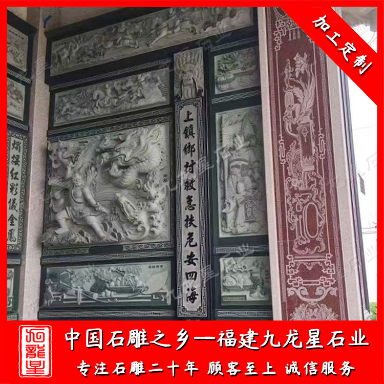 石雕浮雕(寺廟壁畫雕刻廠家 寺廟宗祠浮雕圖案設計)——九龍星石業