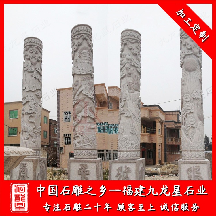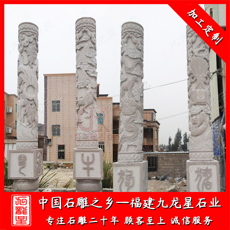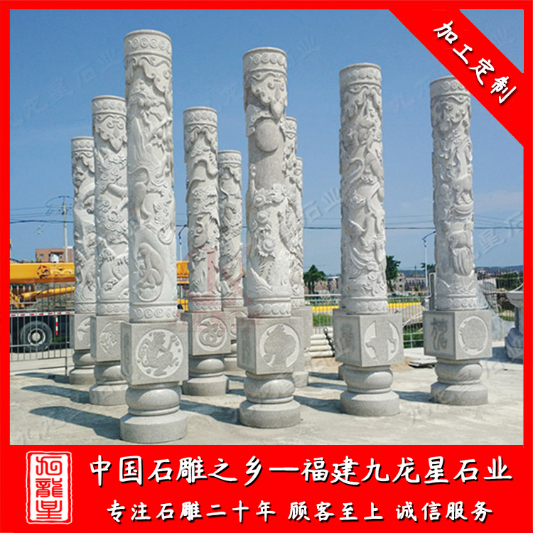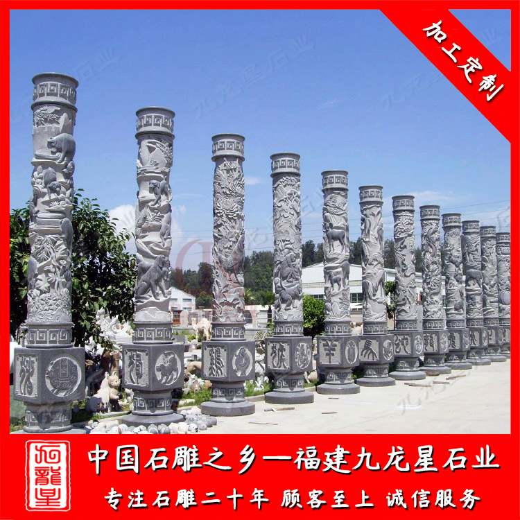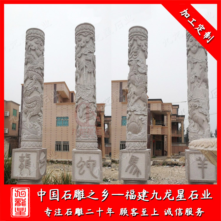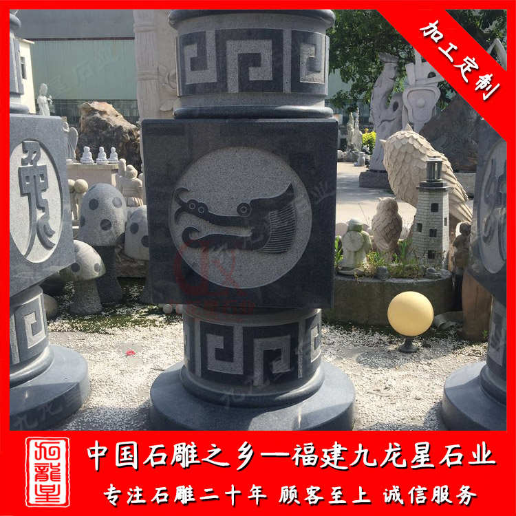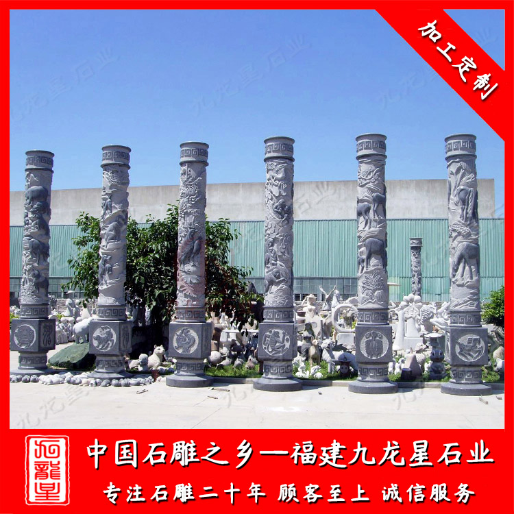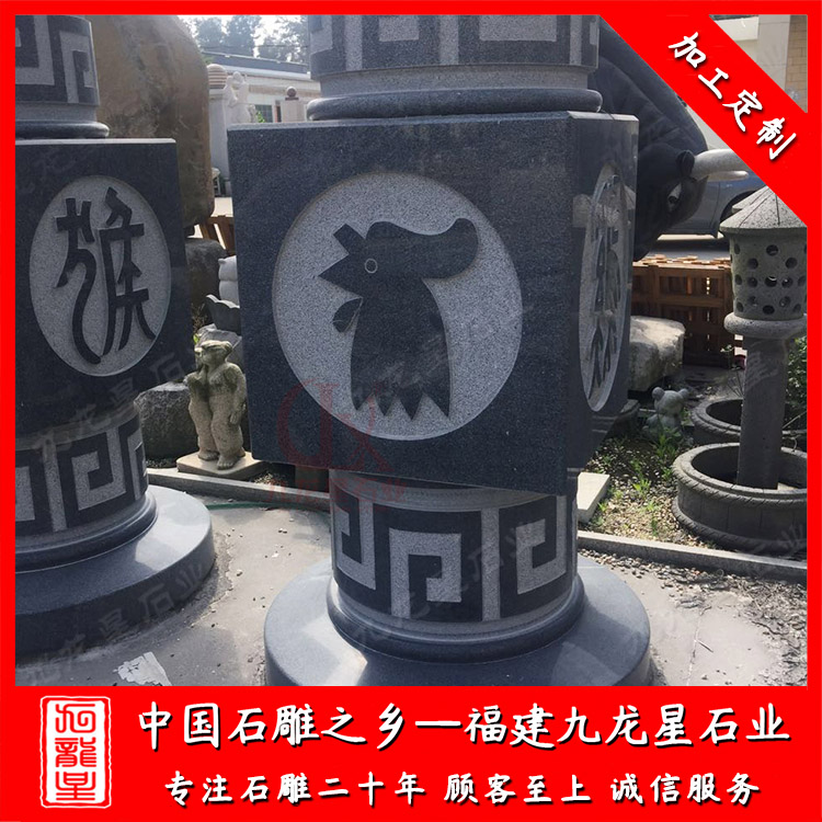 石雕文化柱(景區石雕十二生肖柱廠家 批發石雕文化柱子)——九龍星石業