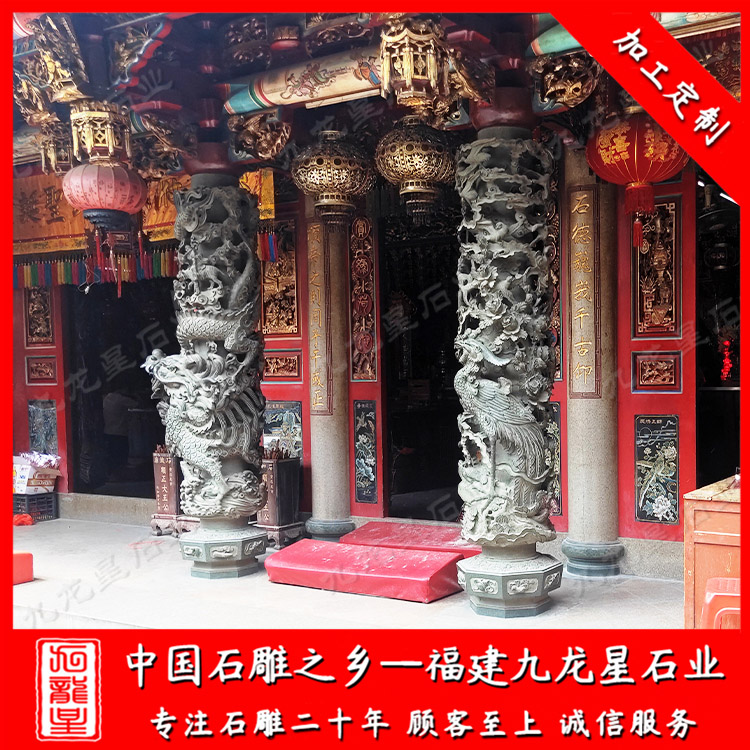 祠堂石雕龍柱雕刻多為采用鏤空雕、透雕和浮雕來進行,讓整根祠堂石雕龍柱更具有立體感、空間感。