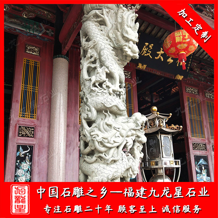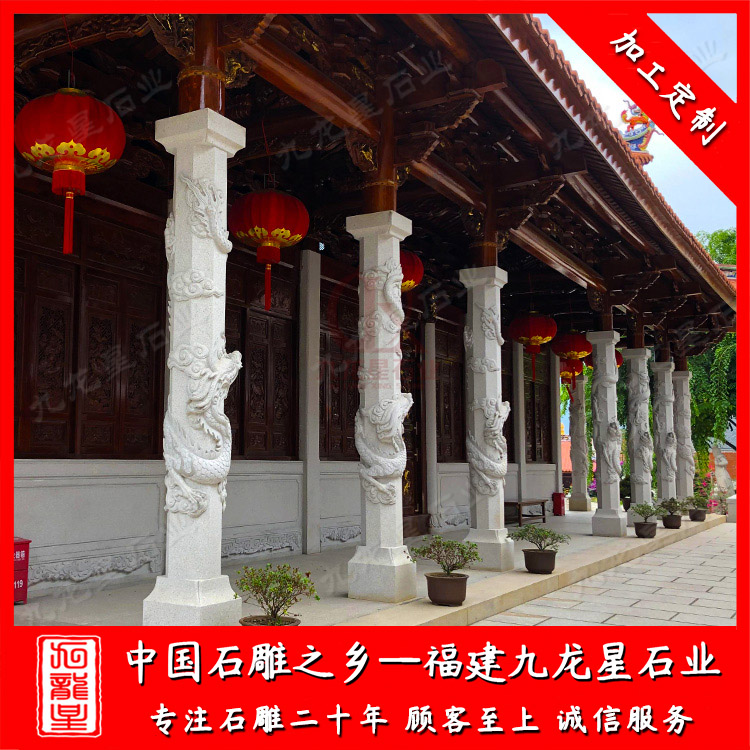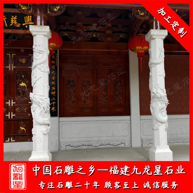 石雕龍柱(祠堂石雕龍柱雕刻廠家 加工祠堂門口石柱)——九龍星石業