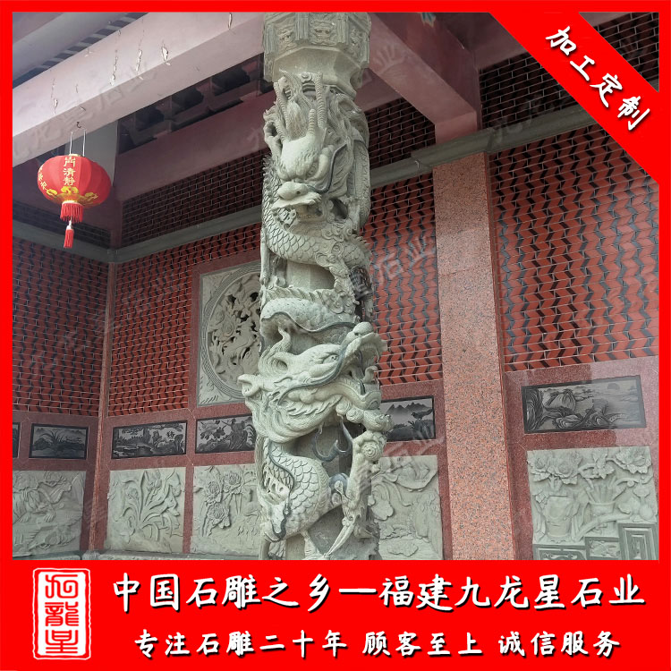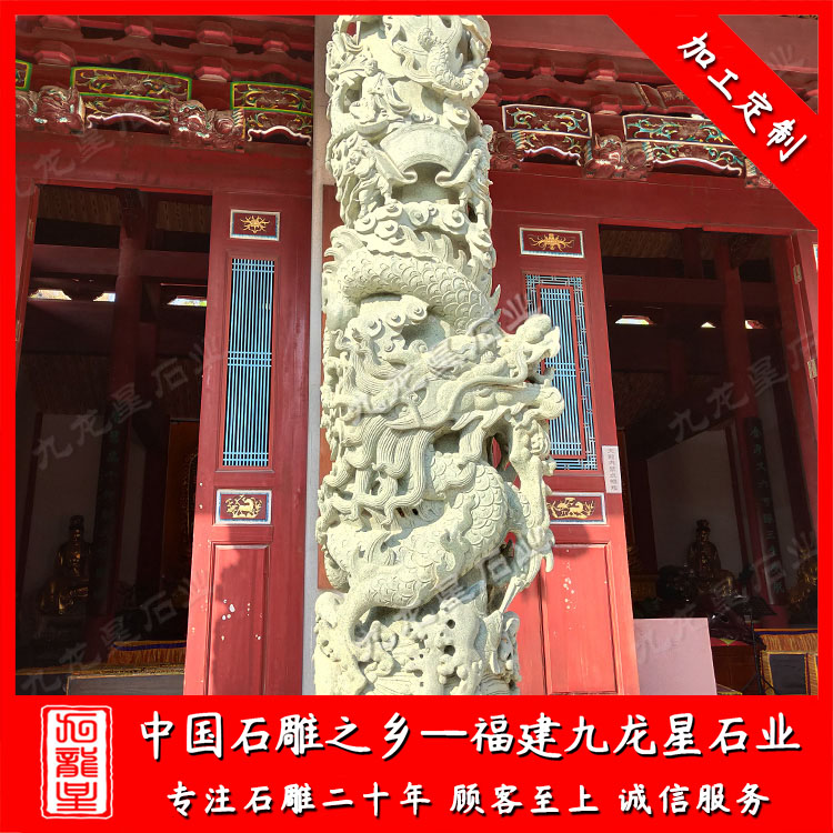 石雕龍柱(寺廟石雕龍柱廠家 青石盤龍柱圖片大全)——九龍星石業(yè)