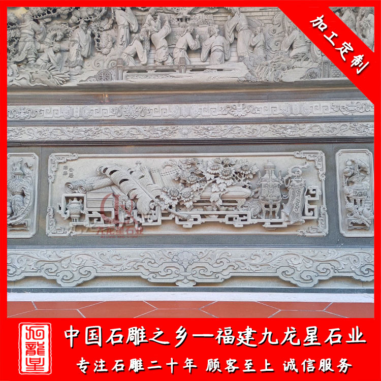 石雕浮雕(石雕浮雕壁畫圖片 廣東祠堂石材浮雕壁畫墻)——九龍星石業