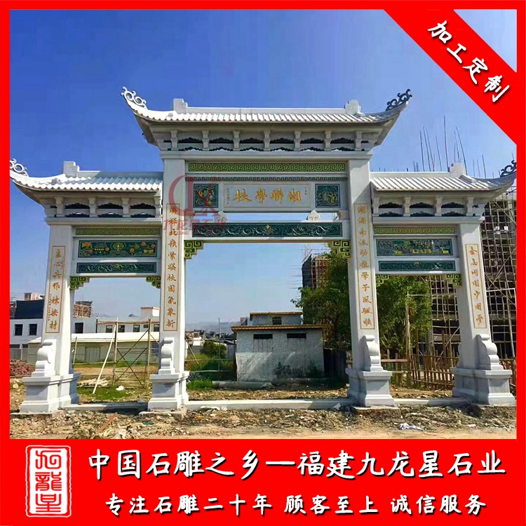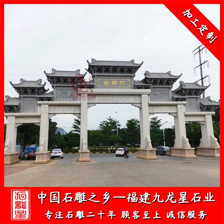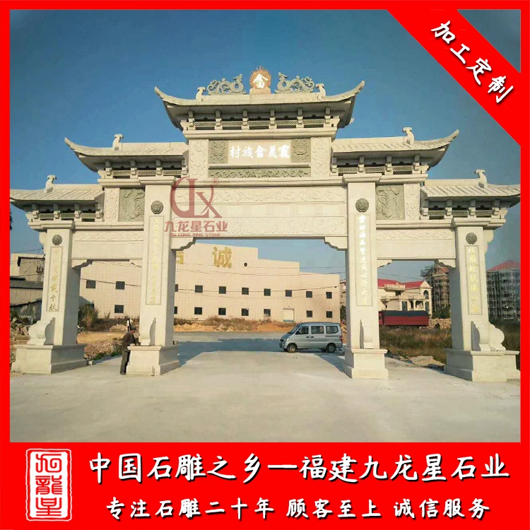 石雕牌坊(石雕農村牌坊廠家 新農村入口石牌坊大門)——九龍星石業