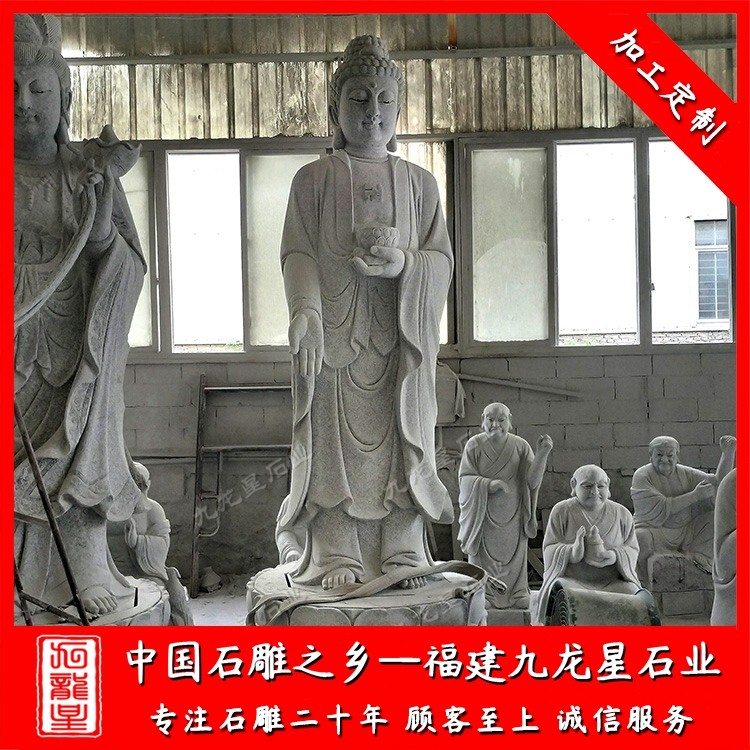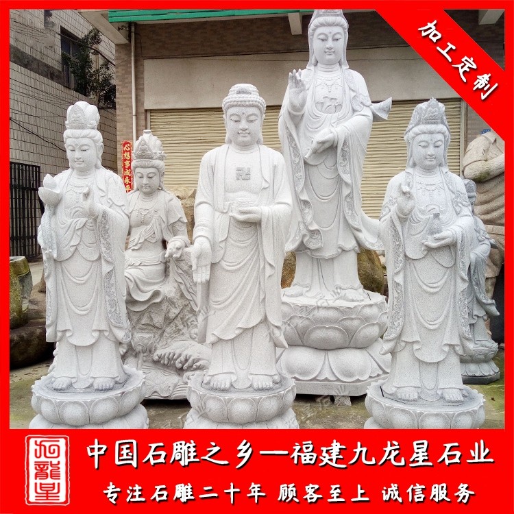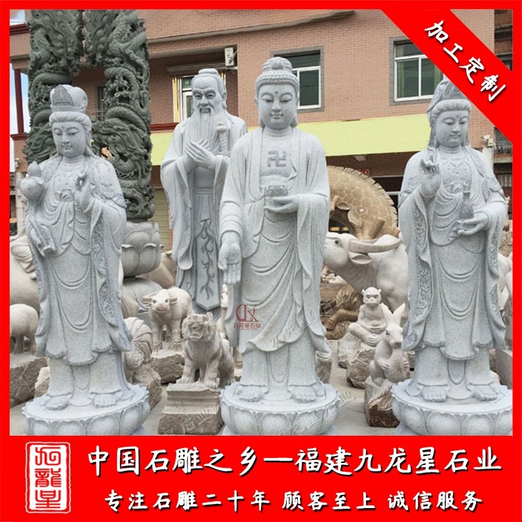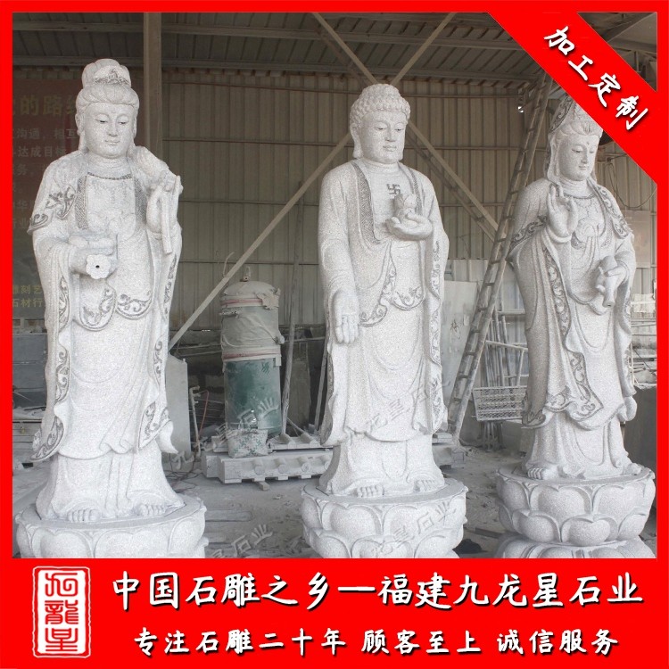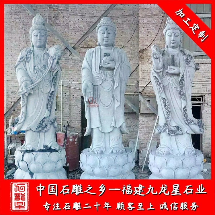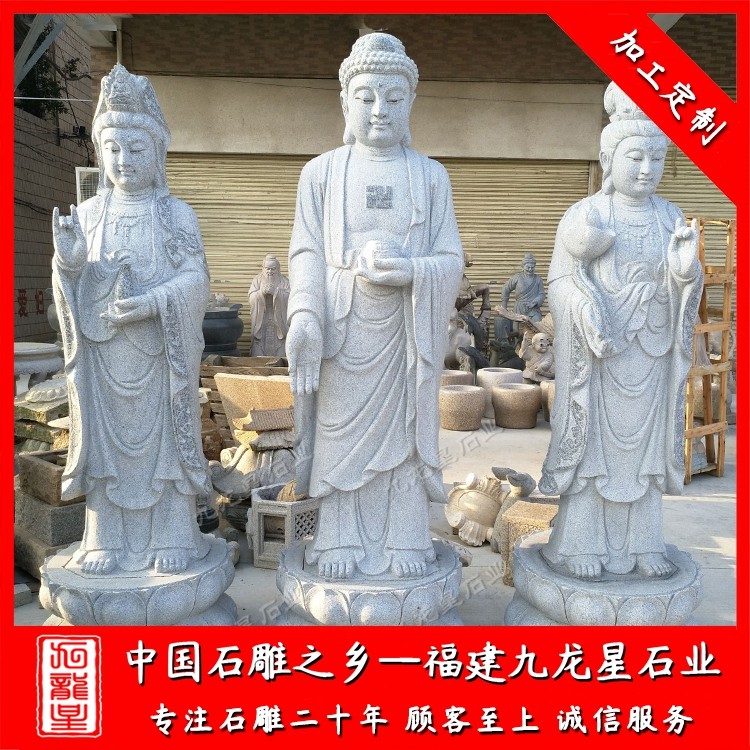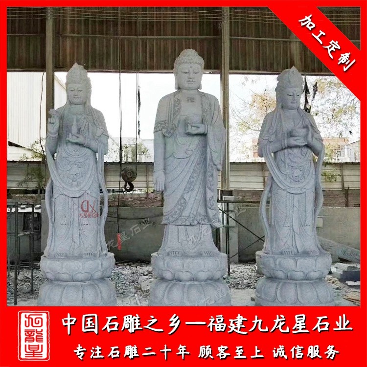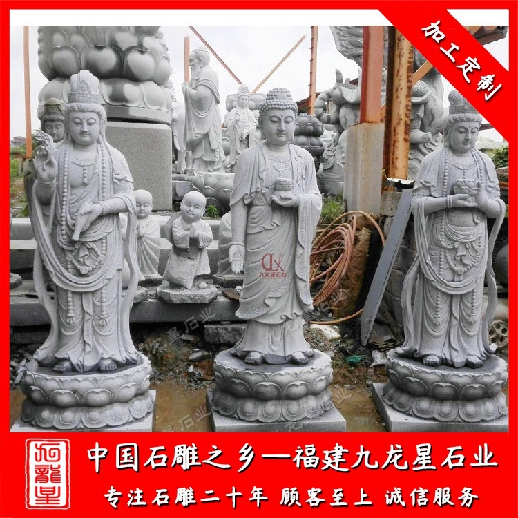 石雕西方三圣(寺廟石雕三寶佛定做 石雕阿彌陀佛圣像圖片)——九龍星石業