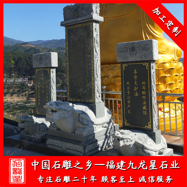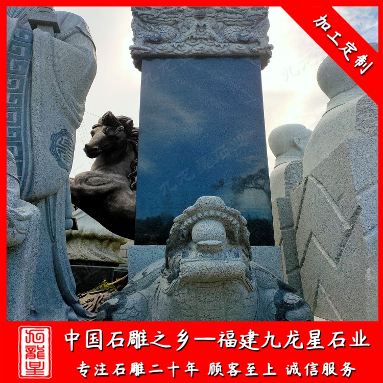 石雕龜馱碑(青石龍龜碑定做廠家 寺院寺廟青石龍龜碑圖片)——九龍星石業