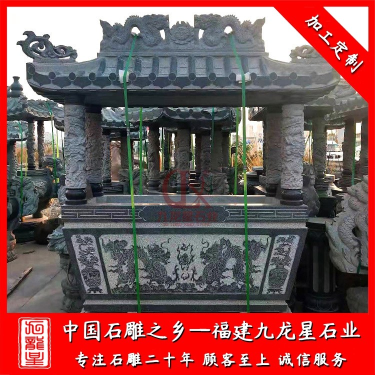福建石雕香爐供桌的定制款式豐富多樣,每一個款式都有其獨特的特點和寓意。首先,我們來欣賞一款以龍紋為主題的香爐供桌。這款香爐以華麗的龍紋為裝飾,龍紋栩栩如生,根根探云騰空,似乎要從香爐上升騰而出。龍在中國文化中被視為吉祥和權勢的象征,因此這款龍紋香爐供桌在氣勢上十分雄健而富有力量感。此外,龍紋香爐供桌的雕刻細膩,線條流暢,每一處的細節都表現出福建石雕工藝的獨特魅力。