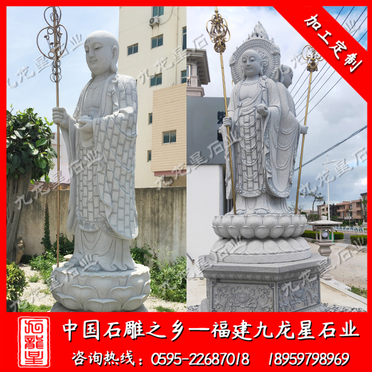 石雕地藏菩薩,或稱石雕地藏王菩薩,。據(jù)《地藏十輪經(jīng)》講,因其“安忍不動如大地,靜慮深密如秘藏”,故名為地藏。為佛教四大菩薩之一,與觀音、文殊、普賢一起,深受世人敬仰。亦是佛教八大菩薩之一。其道場在安徽省池州市九華山,與浙江普陀山、山西五臺山、四川峨眉山并稱為中國佛教四大名山。石雕地藏王有:“地獄未空,誓不成佛!”“我不入地獄,誰入地獄!”之豪言壯語,被尊稱為大愿地藏王菩薩。