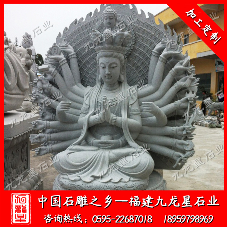 石雕千手觀音(寺廟觀音菩薩石雕 石雕千手觀音廠家批發)——九龍星石業